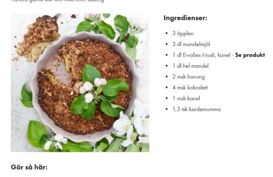 Nu är det höst på riktigt! Njut av denna goda äppelpaj bakad på säsongens äppelskörd och Ewalies Kanelmüsli.
